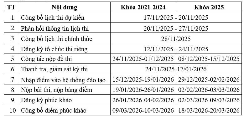 - Đợt 2 (Khóa 2025): Từ 29/12/2025 đến 17/01/2026.